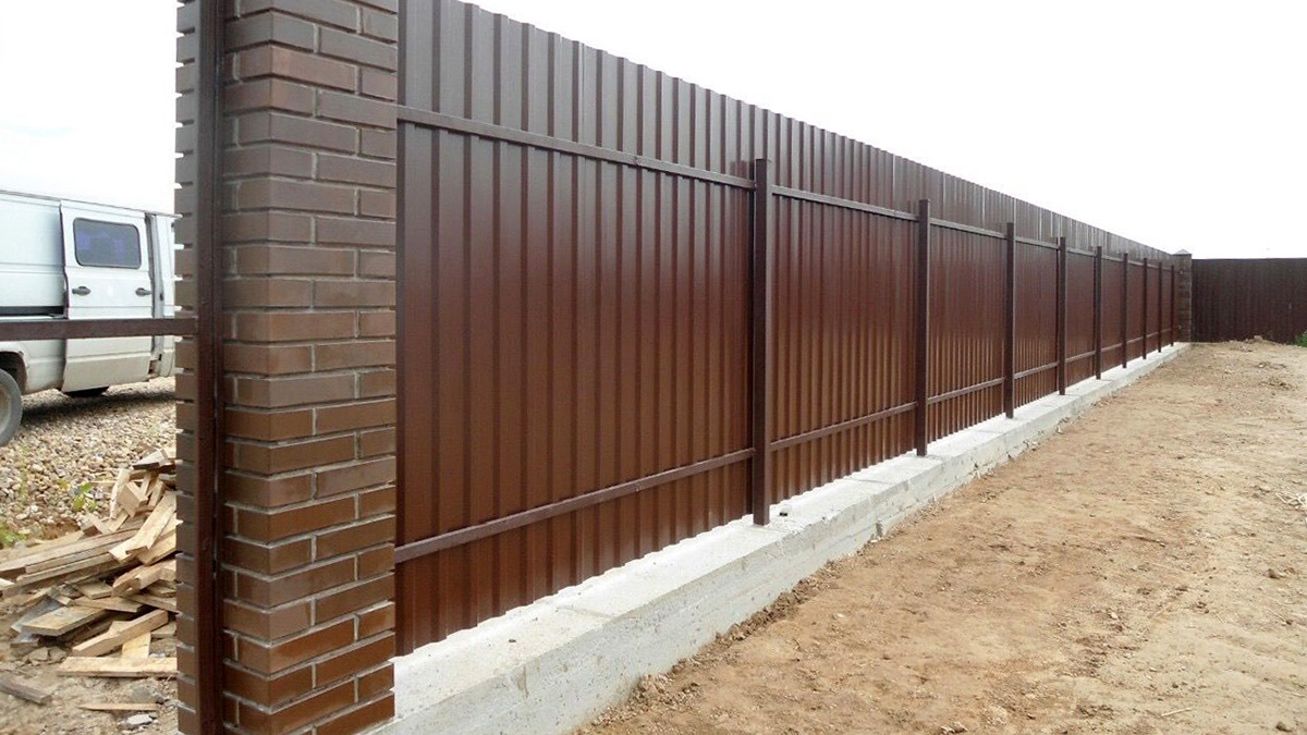 Цены, фото. Вся информация про монолитные заборы с кирпичными столбами.